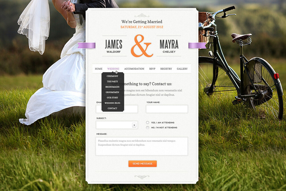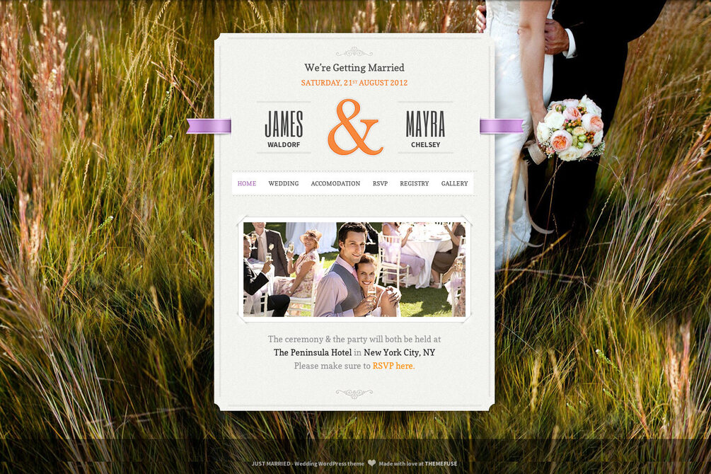 All our themes are very customizable and easy to use, and Just Married is no exception. You can change colors, backgrounds and many more directly from the WordPress admin, in a matter of clicks.