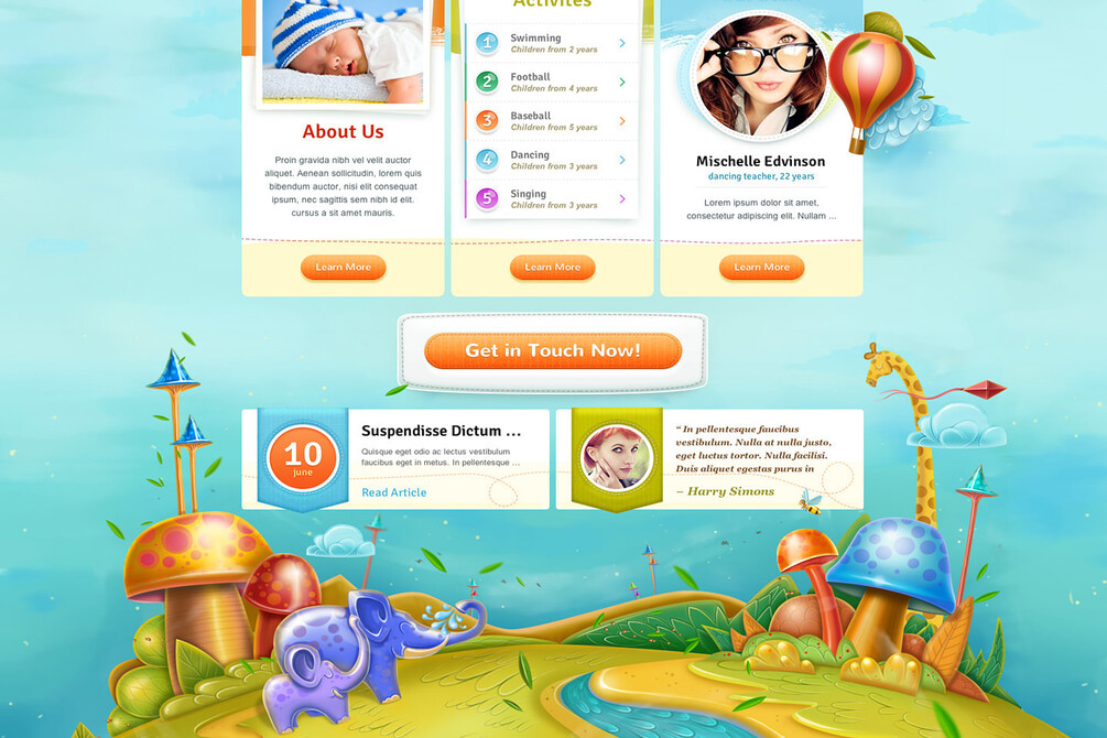 A gorgeous, responsive kids WordPress theme ideal for a kindergarten website or a blog discussing children activities.