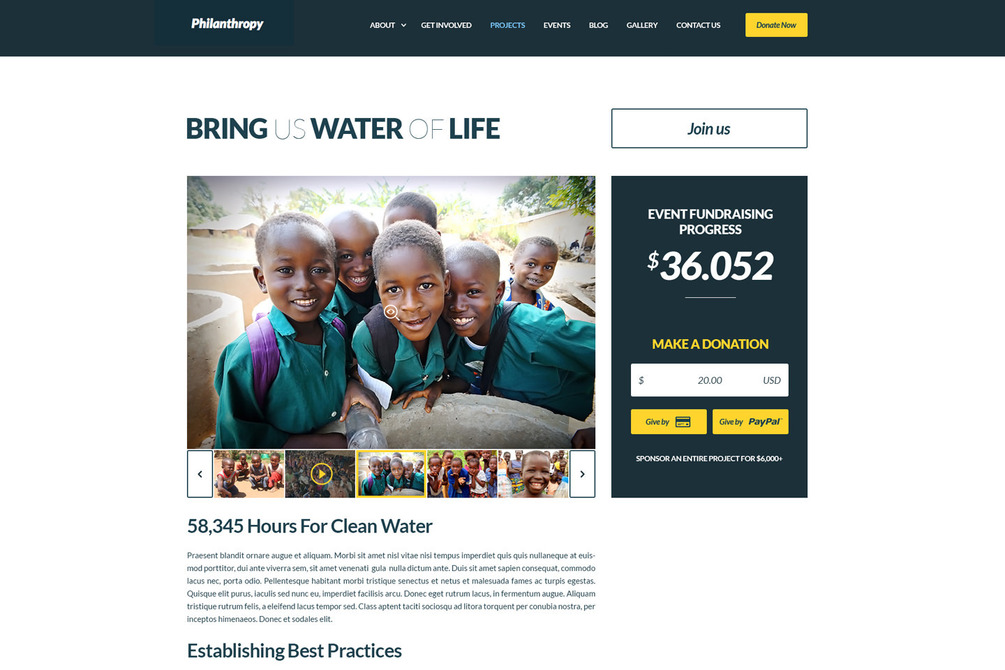 All our themes are very customizable and easy to use, and Philanthropy is no exception. You can change colors, backgrounds and much more directly from the WordPress admin, in a matter of clicks.